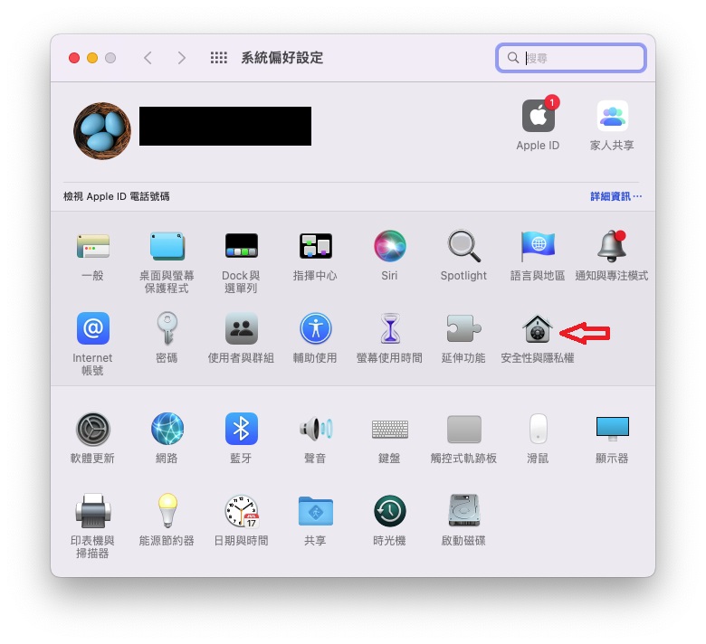 1. 開啟系 “統偏好設定” → 選擇 “安全性與隱私權”