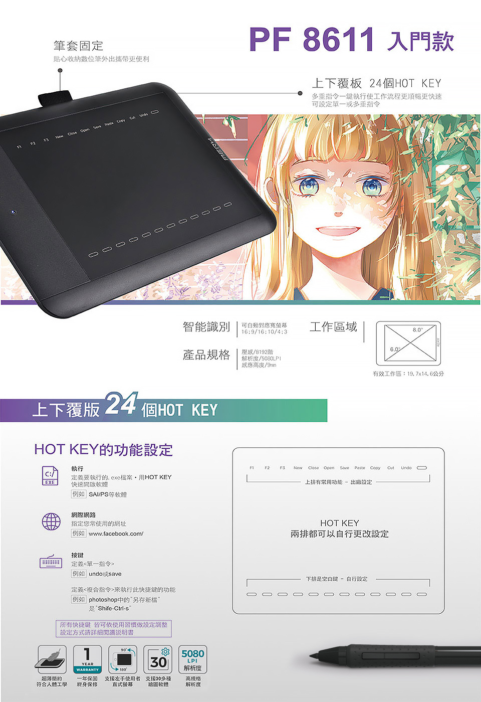 ●快捷鍵;覆板可自訂快捷鍵功能,提高工作效率。