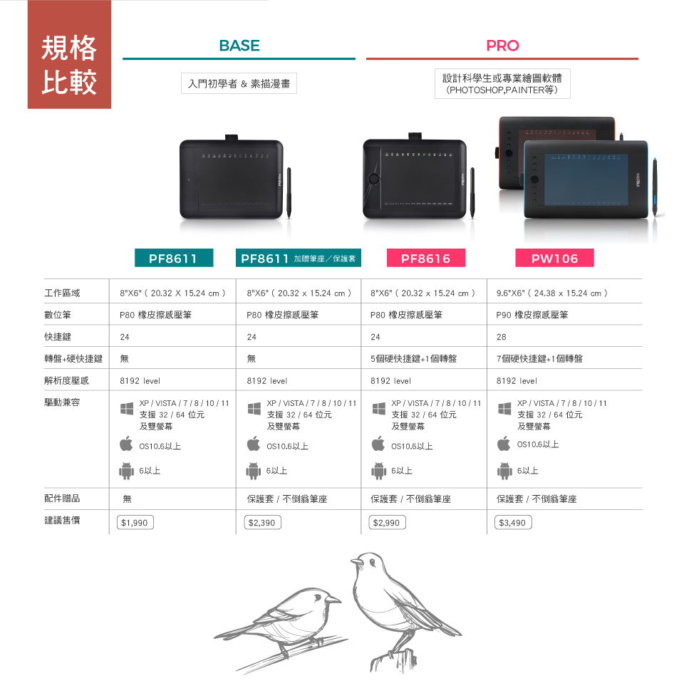 ●最佳線性工作區域8"x6",體積較小方便攜帶(尺寸309x237x9mm)